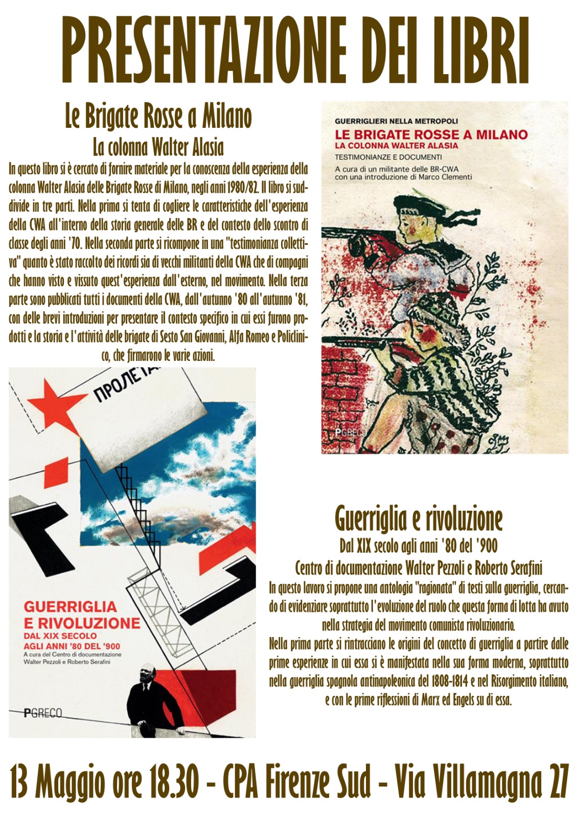 13 Maggio: Presentazione “Le brigate Rosse a Milano” e “Guerriglia e rivoluzione”