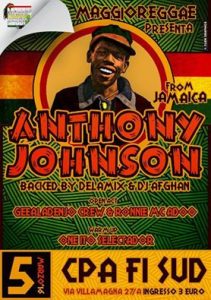 Sabato 5 MarzoANTHONY JOHNSON (Jam) livefeat. Dj afghan & DelamixLeggi tutto »Sabato 5 MarzoANTHONY JOHNSON (Jam) livefeat. Dj afghan & Delamix