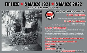 Sulle strade di ieri, le lotte di oggi! “Quel dì che s’innalzò le barricate” Giornata di memoria e di lotta promossa da Firenze Antifascista, a… Leggi tutto »FIRENZE: 5 MARZO 1921-2022