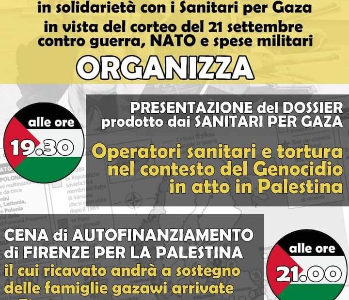 Giovedì 19 Settembre, presentazione del dossier prodotto dai Sanitari per Gaza e cena di autofinanziamento di Firenze per la Palestina.