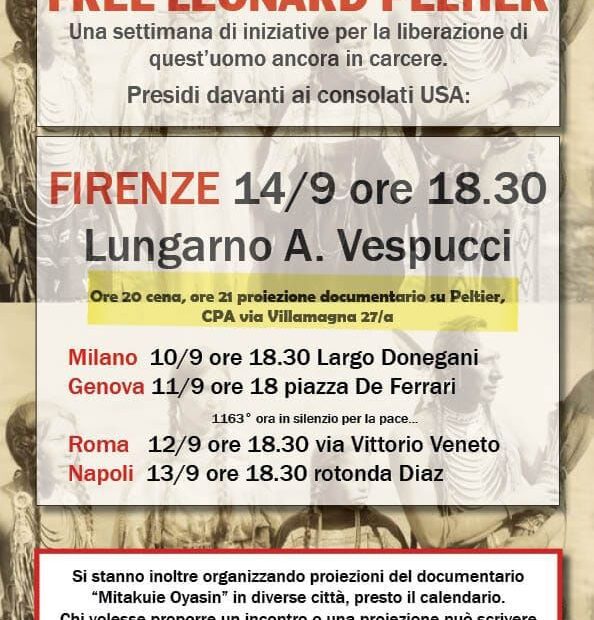 Sabato 14 Settembre, settimana di mobilitazione e di iniziative per la liberazione di Leonard Peltier.