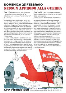 Questo è ciò che ci stanno dicendo opinionisti e politicanti. Qualcuno dirà che è iniziata con l’attacco iraniano alle basi USA in Iraq, altri con l’omicidio di Soleimani… Leggi tutto »NO ALLA GUERRA!