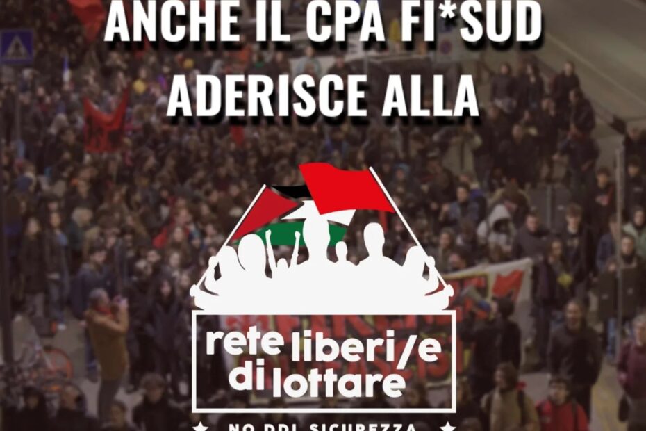 Come CPA Fi*Sud abbiamo aderito da subito alla Rete Liberi/e di Lottare, uno strumento che riteniamo necessario per tutte e tutti coloro che, all’interno del movimento di classe, rivendicano la centralità delle lotte e della conflittualità come strumento per migliorare le condizioni materiali di lavoratori e lavoratrici, contro ogni impianto repressivo che rappresenta un passo in avanti nella gestione del fronte interno della guerra per lo Stato.