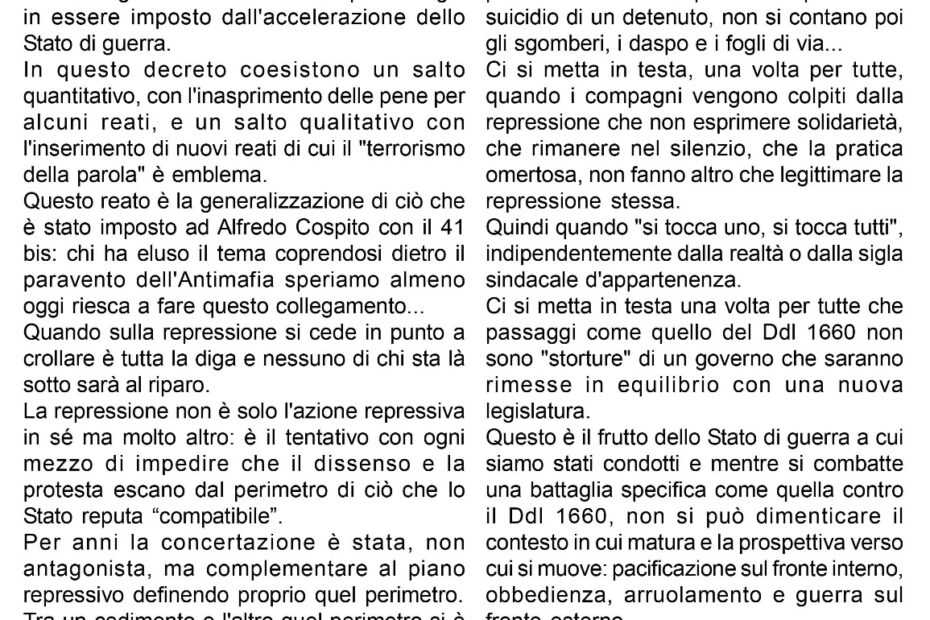 Pubblichiamo di seguito il testo frutto del confronto che quest’estate ha visto impegnate molte realtà a livello nazionale e che hanno deciso di coordinarsi nella Rete Liberi/e di lottare – Fermiamo insieme il DDL 1660.